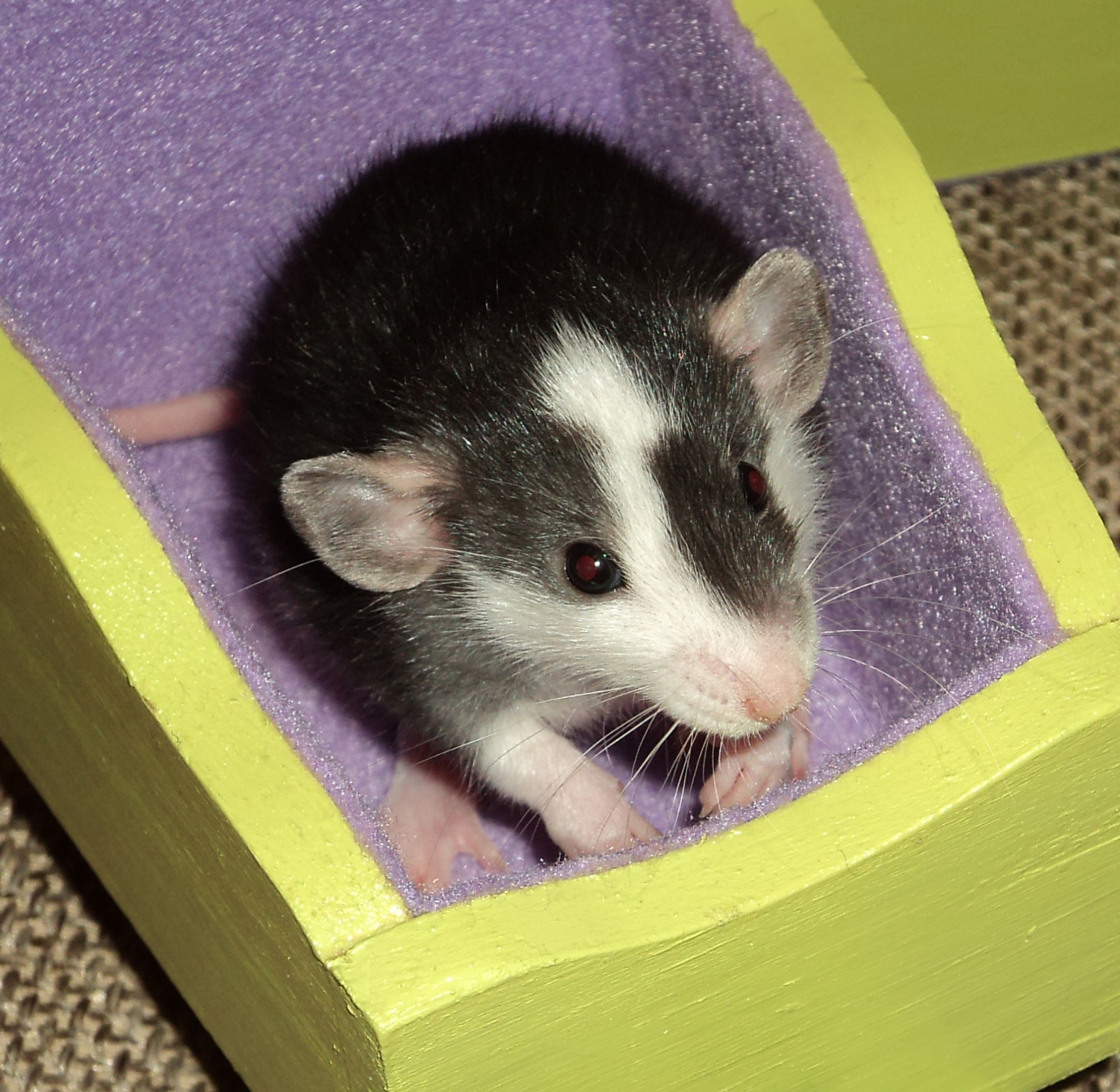 En premier lieu je veux pouvoir continuer à faire naître des rats qui me plaisent dans de bonnes conditions. Les rats qui me plaisent sont husky, dumbo et complètement zinzins. J’essaie de choisir des reproducteurs en bonne santé, qui portent ou expriment les traits qui m’intéressent. Je suis assez limitée dans mes adoptions du fait que personne ne travaille le husky près de chez moi, donc je passe beaucoup par des porteurs.