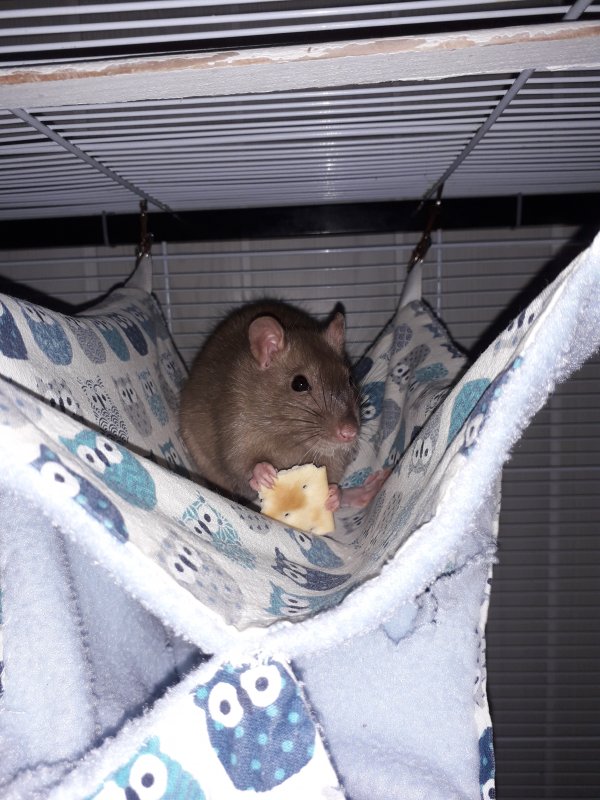 Ah pis lui c'est un sacré charmeur ! Premier à s'aventurer dans la cage, sur les étages, dans un nouvel accessoire, ultra câlin-pot de colle... Si j'avais pas un Kobayashi Maru, seulement trois mâles sur la portée et des vues sur deux pépettes, j'aurais été tentée de le garder xD