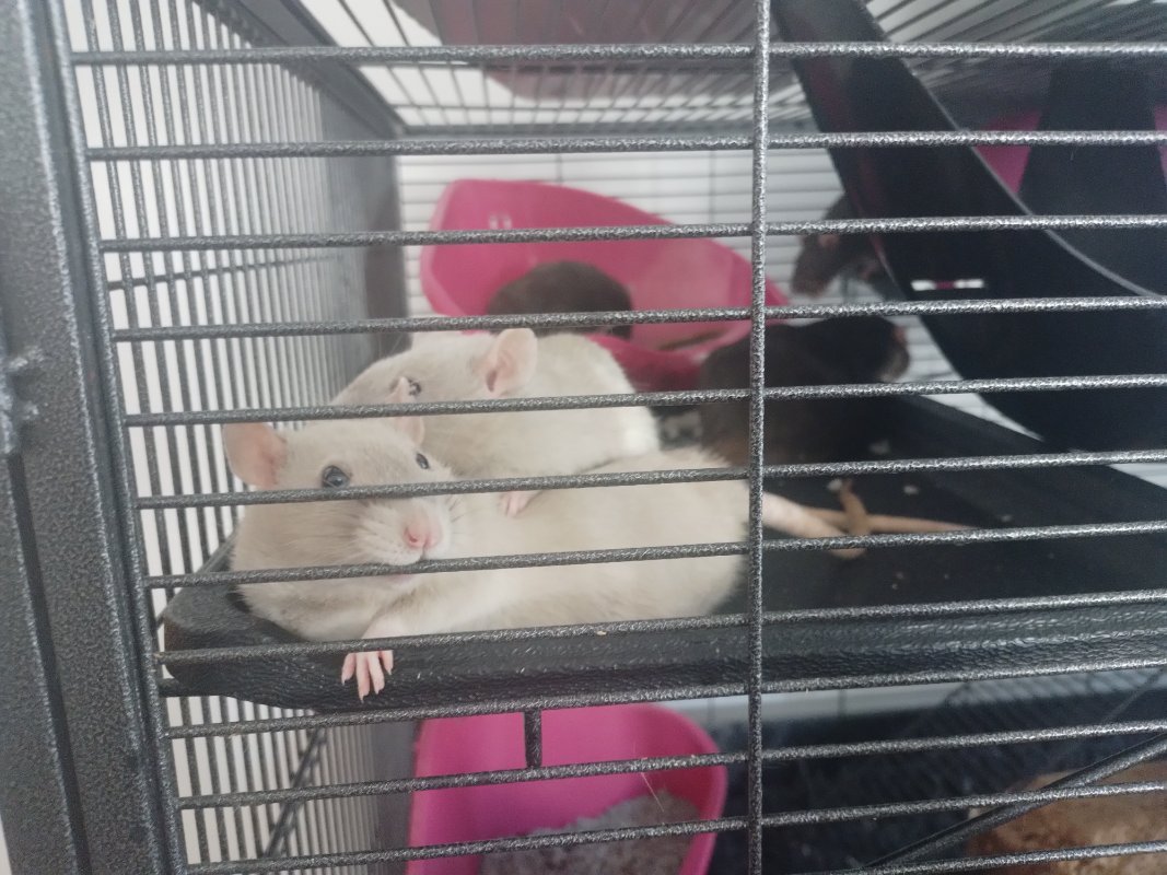 Un autre nouveau venu a été intégré au groupe, il s'agit de Chapelier, ( male castré, né en aout 2021)  adopté au Bazar des Nac (initialement sorti de labo).  C'est un jeune rat tout foufou, un peu gauche. Il n'est pas très adroit de ses pattes, mais viendra malgré tout en sautillant vous voir à la porte de la cage !