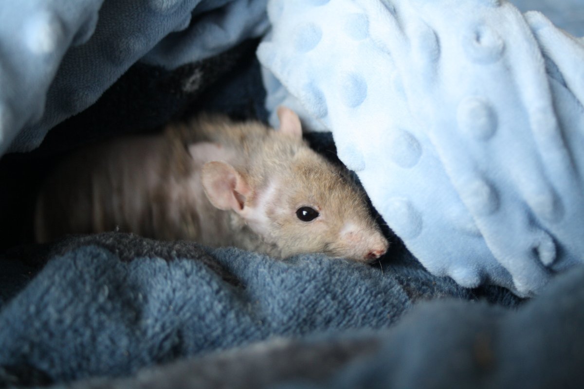 A la maison, Scarlett est une ratoune incroyable. ^^ Super proche de l'humain, joueuse, et complètement hyperactive ! Dès que je passe devant la cage, elle est accrochée aux barreaux, et si j'ai le malheur de m'approcher, elle mord les barreaux et elle saute partout pour que je la fasse sortir. Résultat, elle passe beaucoup de temps à se promener parce que je peux pas résister xD