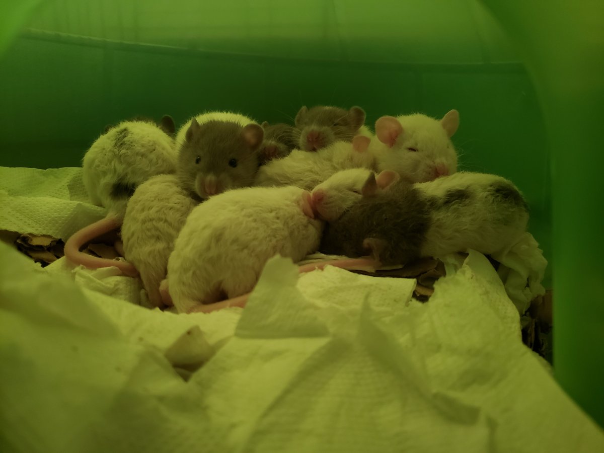 Aujourd'hui j'ai aménagé la cage des ratons pour leur éveil! Mais bon depuis l'ouverture des yeux les petits ne semblent pas pressés de sortir de leur cocon. 😅