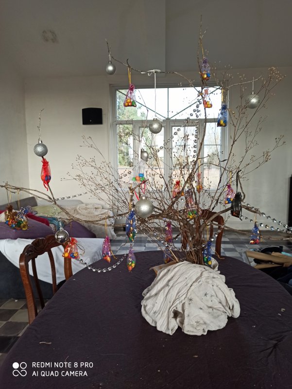 J'ai commencé aussi avec des branches du jardin et je n'ai pas encore sorti le sapin.