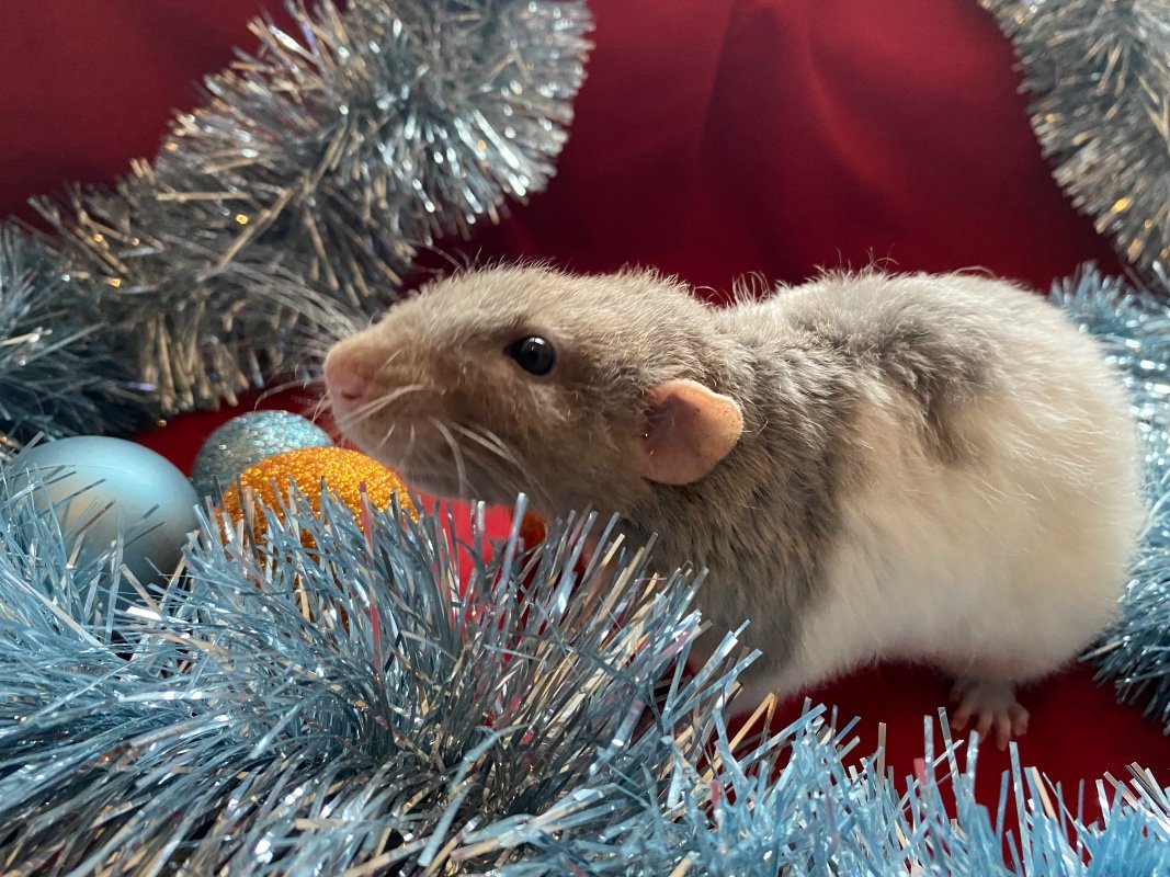 Autre : Un petit rat très dynamique, adore essayer de se sauver de la cage ou du parc de jeux, mais revient vers nous dès qu'on s'approche de lui ! Il a un petit strabisme divergent qui le rend encore plus mignon.