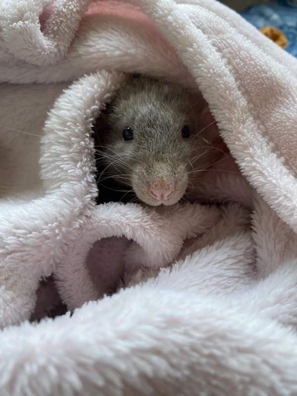 Thari RAS niveau santé. Côté caractère avec moi elle est de plus en plus mignonne, par contre elle embête toujours un peu les autres rates (sauf sa sœur). Comme une des blanchettes à des zones dépoilées, j'ai d'abord pensé que c'était elle qui l'épilait, mais finalement ça semble plutôt hormonal.