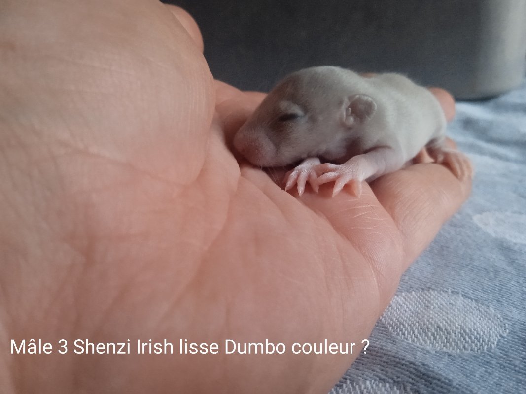 Les erreurs ça arrive effectivement *, par contre du coup si ça a pu arriver une fois en s'en rendant compte assez vite, ça a pu arriver d'autres fois. @Les petits rats Nîmois quand tu maitriseras bien comment ça marche tu pourras vérifier toutes tes généalogies pour t'assurer de tout ça ;) Par contre, si Hel est restée pendant 10min avec les mâles, c'est possible que ça soit pas forcément celui qui lui soit grimpé dessus au moment où elle a vu qui soit le père. Donc vaut mieux s'assurer que génétiquement il n'y a que lui avant d'affirmer : déjà tu peux écarter tous les lisses et tous les c-dilués qui ne sont pas burmeses (siamois, devil, himalayens, albinos, avec ou sans BE).  Tu peux aussi jeter un oeil plus approché aux oreilles des petits : si il y a du standard, alors papa est standard (par contre 100% dumbo avec les blagues de la génétique le papa pourrait être dumbo ou standard). Si tu veux tu peux nous faire toute la liste de tes rats et des photos de tous les ratons de la portée, on t'aidera à éliminer les pères potentiels pour espérer tomber que sur Zeus ^^