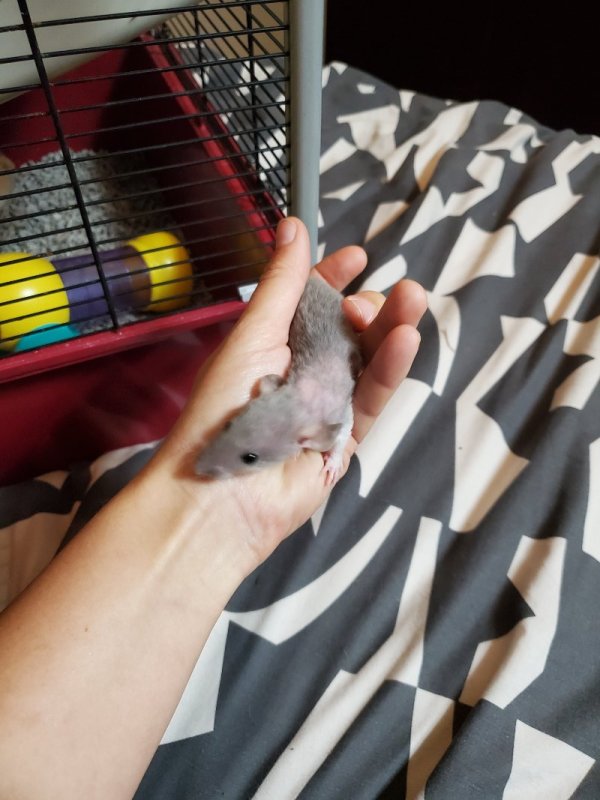 Caractère : Paris est un rat adorable, curieux. Contrairement à son frère qui est très très humanophile, il a un peu plus de réserve quand il est chez lui. Cela dit, il a été tout de suite à l'aise à la maison, n'a jamais eu peur des chiennes et s'est baladé dans le salon sans soucis ! Pas de problème de crise d'ado ou de pénibilité avec son frère (seconde raison pour mon choix : ses autres frères ont parfois été pénibles)