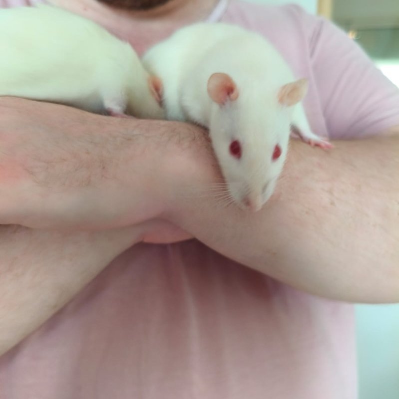 Ruby et Daisy sont deux rates nées en décembre 2024. Réhabilitées en août 2025, elles sont issues d'un surplus de reproduction et n'ont donc participé à aucun protocole expérimental.
