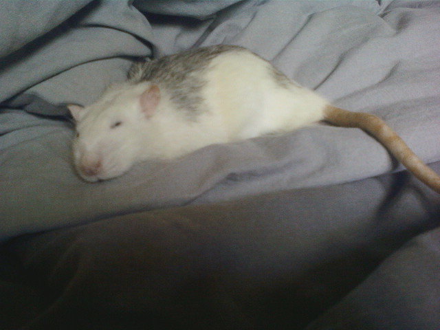 La boule de poil husky sur l'essui rose, c'est Skank :) Il à un don pour être irrésistible sur les photos (même en dehors des photos d'ailleurs, c'est un rat extraordinairement "paisible" et attendrissant).