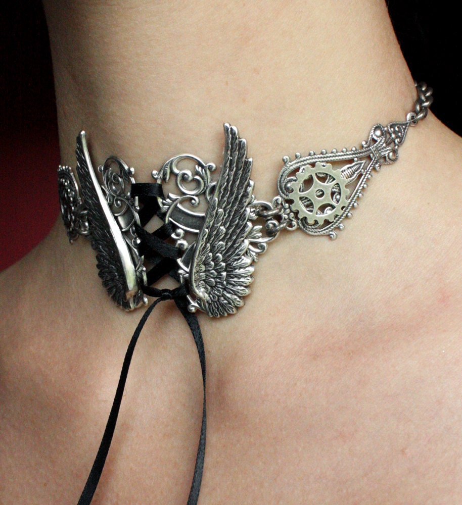 4/Êtes-vous bijoux ? Hum, ça dépend quoi huhu. J’adore les bagues mais j’ai des petites saucisses à la place des doigts donc il serai hasardeux de m’en offrir une (et puis en réalité je n’en mets que très rarement car cela est interdit en service), mais j’aime les colliers ou les boucles d’oreilles dans le style memento mori donc j’assume pleinement têtes de morts en cabochon, squelettes, cœurs réalistes et choses curieuses. Mais j’aime aussi tout ce qui peut toucher les thèmes plus enfantins comme Alice, ou des choses faisant références à des contes (que j’adore), ou encore à des petits animaux (lapin, petit oiseau stylisé etc etc), ou encore des choses plus délirantes : moustaches, loupe, montre en pendentif, bref j’aime les choses qui sortent un peu de l’ordinaire en fait. J’aime aussi les bidules plus pin-up avec les traditionnelles hirondelles, rubans et petits pois.