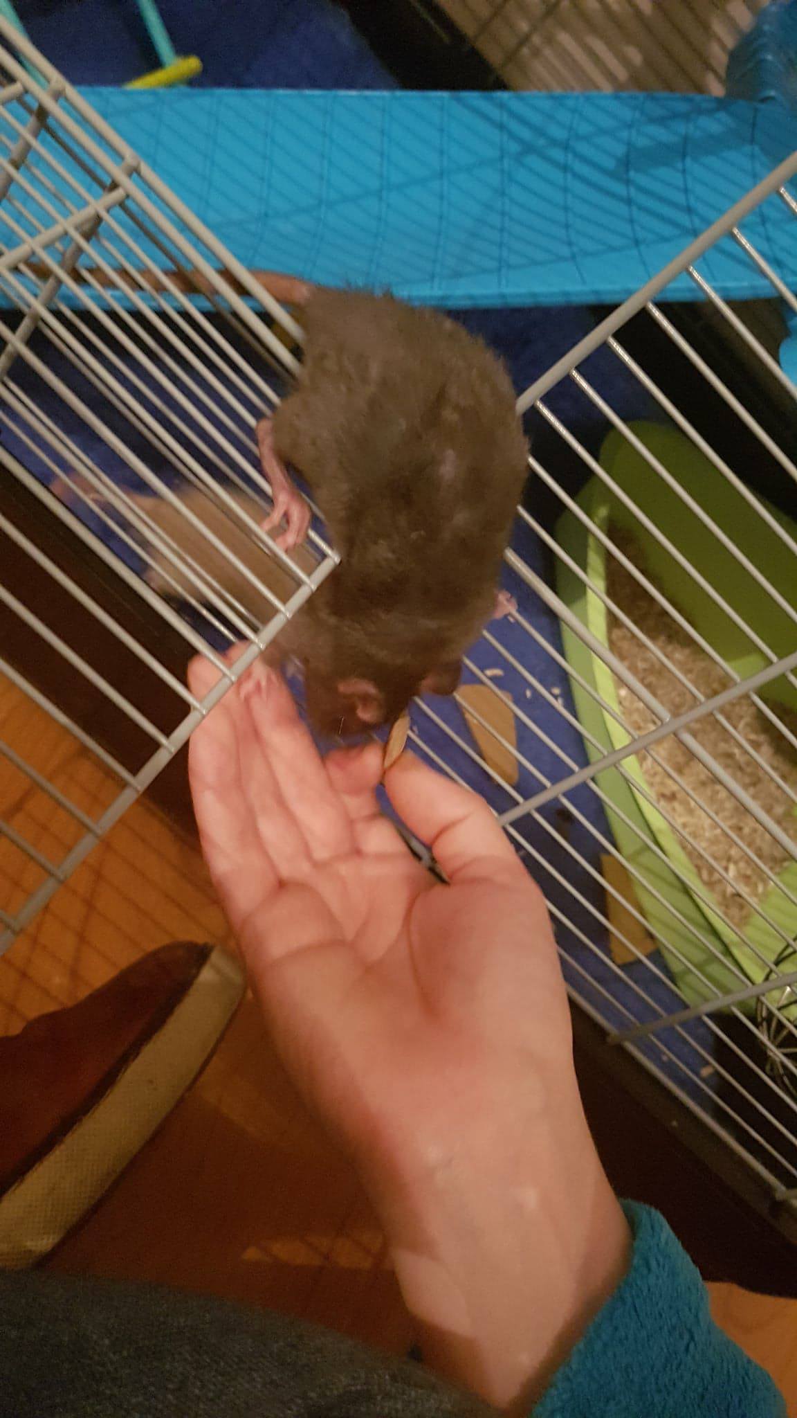 J'ai confié Pin Up à Camille. Elle cherchait une jeune ratte pour être avec celle qu'elle avait déjà et comme elle habite près de chez moi je lui ai confié. A la condition que ,si besoin est, je puisse lui faire faire une portée.