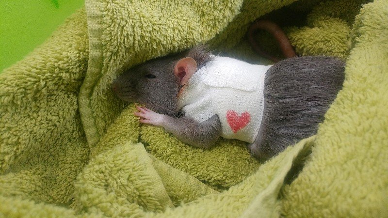 Maintenant le fils : @Ako-Cissnei a trouvé une croûte et une boule au niveau du coude de Moebius. Direction véto (il va devenir THE clinique spé NAC rat sans s'en rendre compte à ce rythme ><), il s'avère que c'est un abcès. Je laisse Ako-Cissnei vous en dire plus.