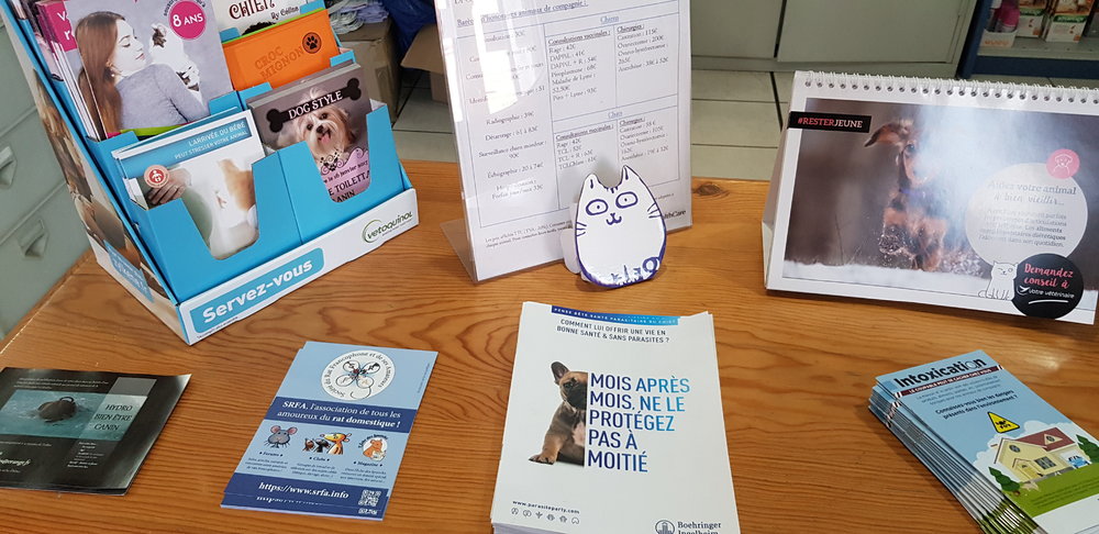 Je peux en déposer chez mon vétérinaire et voir pour en filer aux adoptants pour qu'eux même puisse en distribuer à leurs vétérinaires ;)