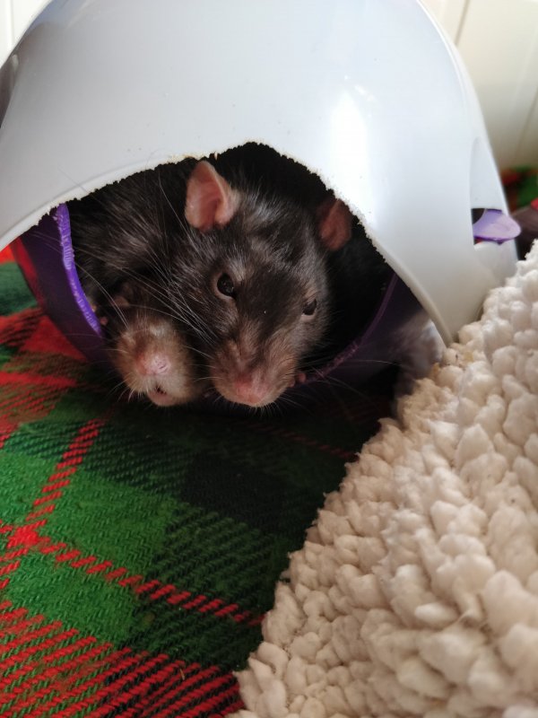 Actuellement elle est avec Lily et ses petits. Happy étant une rate très gentille, très proche de l'humain, pas peureuse du tout, j'ai trouvé que ce serait un bon exemple pour les ratons ^^