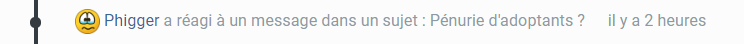 PS: j'ai heureusement de supers adoptants qui remontent le niveau. Merci à eux d'être là, de jouer le jeu et de me sortir de mon désespoir xD