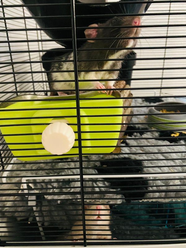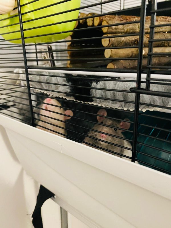 Je ne peux pas mettre Bull et Tempo que tous les deux. Il faut Goutte ou Pop, sinon ils vont se cartonner mutuellement. Je n'ai jamais réussi à les avoir à deux ensembles sans soucis. Même pour un trajet. Je rajoute un troisième rat ils se papouillent et dorment ensemble, même si l'autre rat est à l'autre bout de la cage. C'est pour ça que je n'ai pas castré un des deux, voire les deux.