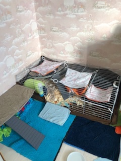 Flash est vraiment très speed par rapport a son copain 2 semaines plus âgé . On sent qu'ils ont envie de sortir de la cage, alors on a bricolé un parc, on va tester aujourd'hui.
