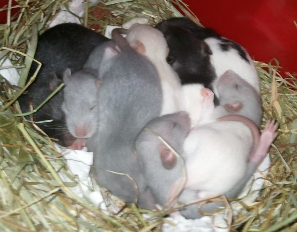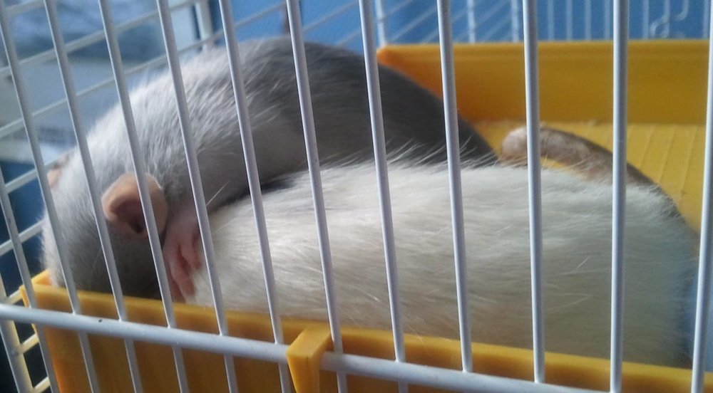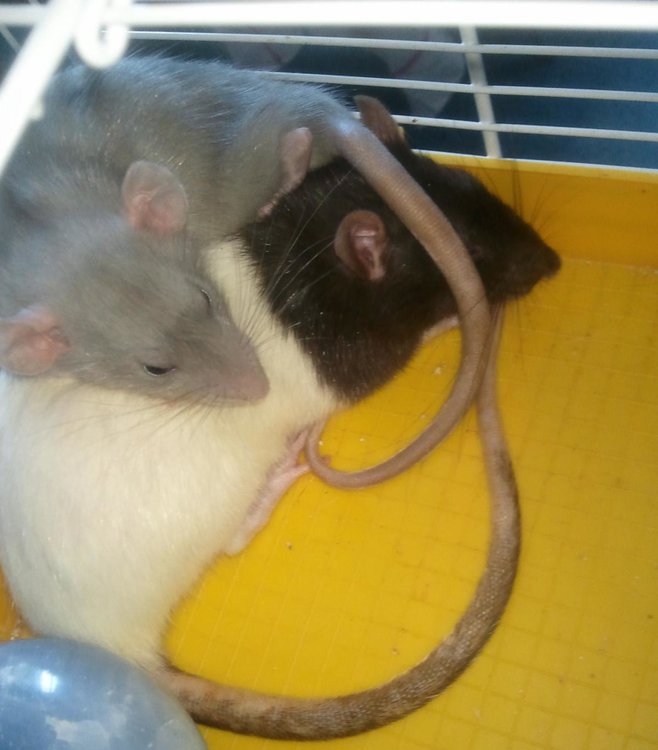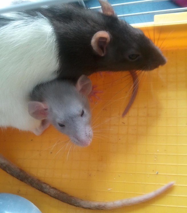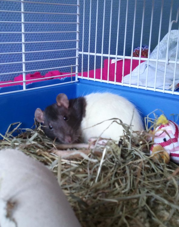 Bon, je sais que ça fait un moment, mais d'abord je me voyais mal faire ça il y a quelques semaines (j'ai pleuré comme une vieille madeleine chez le véto ), et puis c'est après tout un des meilleurs endroits pour le faire, ici ! Bref, il y a maintenant un petit moment que ma petite Caelo est partie au paradis des rats, à cause d'un méchant avc. Mais maintenant, je pense surtout à comment cette ratte était merveilleuse... De toutes les rattes que j'ai eues, c'est l'une de celles dont j'ai été la plus proche. Une vraie coupine, adorable, qui vient en courant quand je rentre le soir, affectueuse comme pas deux, curieuse, qui craint les chatouilles, reconnaît son nom, fait la biscotte (cracotte quoi) quand elle est contente, bref... J'en ai un magnifique souvenir C'était énorme Bref, il est temps de faire un petit hommage à ma coupine : Attaque puppy face de ratte !! Comment je pose et que je suis trop belle (et que j'ai trop défoncé la souris en mousse à côté). Et même que j'ai fait de superbes bébés. Et que je suis une super maman. Et accessoirement un super oreiller... Mais surtout, une super maman ! (Helix et ses poses improbables...) Voilà, c'était ma Caelo à moi