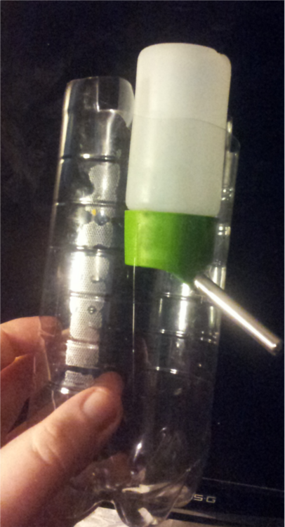 Bonsoir, Le rat et son passé Nom du rat : Chogan Sexe : mâle entier Âge : 35 mois Provenance et date d'adoption : association Antécédents (date, nature, traitements) : tumeur bénigne, abcès, paralysie pattes arrières Conditions de vie : sur drybed avec un autre mâle Le problème actuel En deux mots : difficultés pour boire au biberon classique Vos questions Alors mon papy Chogan a une paralysie des pattes arrières. Il y a eu une faiblesse à ce niveau là et petit à petit, elles n'ont plus fonctionnées. Chogan le vie très bien. Il s'est adapté. Maintenant, il a une grande force au niveau des pattes avant (ce qui impressionne toujours le véto ) Dans la cage, il y a un biberon classique comme celui-ci: Comme il ne peut plus se mettres sur ses pattes arrières, pour boire, il attrape les barreaux et se maintient comme ça. Sauf que au bout d'un moment, il ne pourra plus le faire. Est-ce que vous, vous connaissez d'autres biberons plus adapté à nos papys? J'ai essayé de mettre un récipient pas trop haut mais il s’appuie dessus et renverse tout . Et je n'arrive pas à le bloquer. J'ai aussi pensé a utiliser une gamelle (avec son dispositf de suspension) et le remplir d'eau mais ça porte la gamelle trop en hauteur. En fait, le bac en plastic de la cage est haut et toutes mes cages de quarantaine le sont. Bref, si vous avez connu ça et avez trouvé des astuces, j'aimerais les connaitre Merci