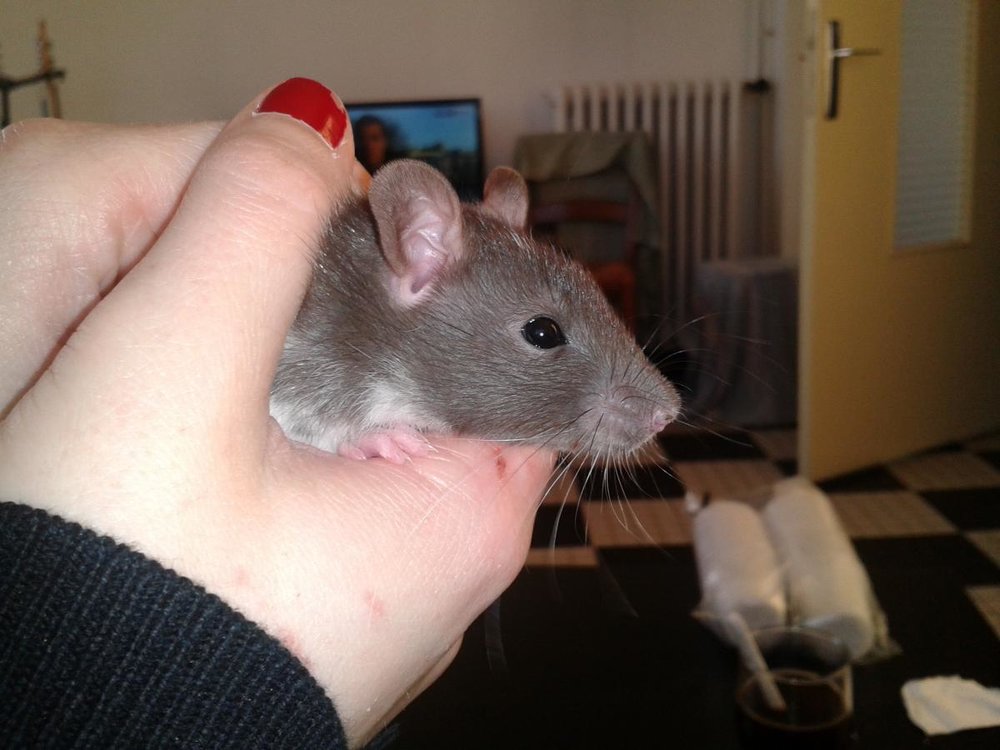 Bonjour, Aujourd'hui je profitai d'être rentrée tôt pour jouer avec les ratous et les flashouiller. Je distribue des graines de courges et je m'étonnes de ne pas voir Eldir sortir. Je vais le prendre dans la cage et là je me rends compte qu'un de ces yeux est très enflé, il y a des traces rouges en dessous, on dirait qu'il y a peut être eu un coup de griffe... Je vais téléphoner au vétérinaire à la première heure demain matin mais en attendant : _ Nettoyage au sérum physiologique? _ Isolement? _Retrait de la litière et passage en drybed? C'est un cas inédit pour moi donc si vous pouvez m'aider jusqu'à demain